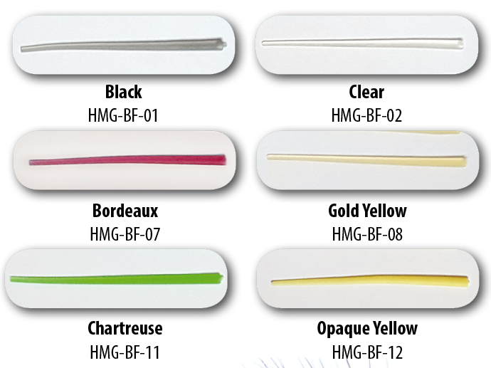 Hemingway's Bug Flesh bodies wrap smooth bodies; no more ugly, bumpy or un-proportioned bodies. All patterns tied using bug flesh will have the perfect shape and feel because bug flesh are tapered from a fine .3 mm tip to a 2.6 mm end. Hemingway’s Bug Flesh has a translucent 3-D quality that can't be matched by any other material in the industry.