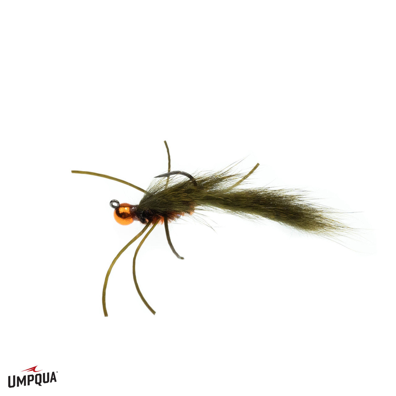 A hybrid of the Zonker and a Pat's Rubberlegs. Fish it as a streamer on the strip, swing it, nymph it, czech nymph it, bounce it. Match it as a large stonefly nymph, crayfish, or general attractor, the possibilities are limitless with this bug. Equipped with a tungsten orange bead and a 60 degree jig hook, this fly will be sure to get down into the water column quick and most undoubtedly catch the eye of a nearby fish. In sizes 8 through 12 and offered in three color ways Orange/Natural, Orange/Olive and Olive/Brown this pattern will do the trick in a number of different fishing scenarios.